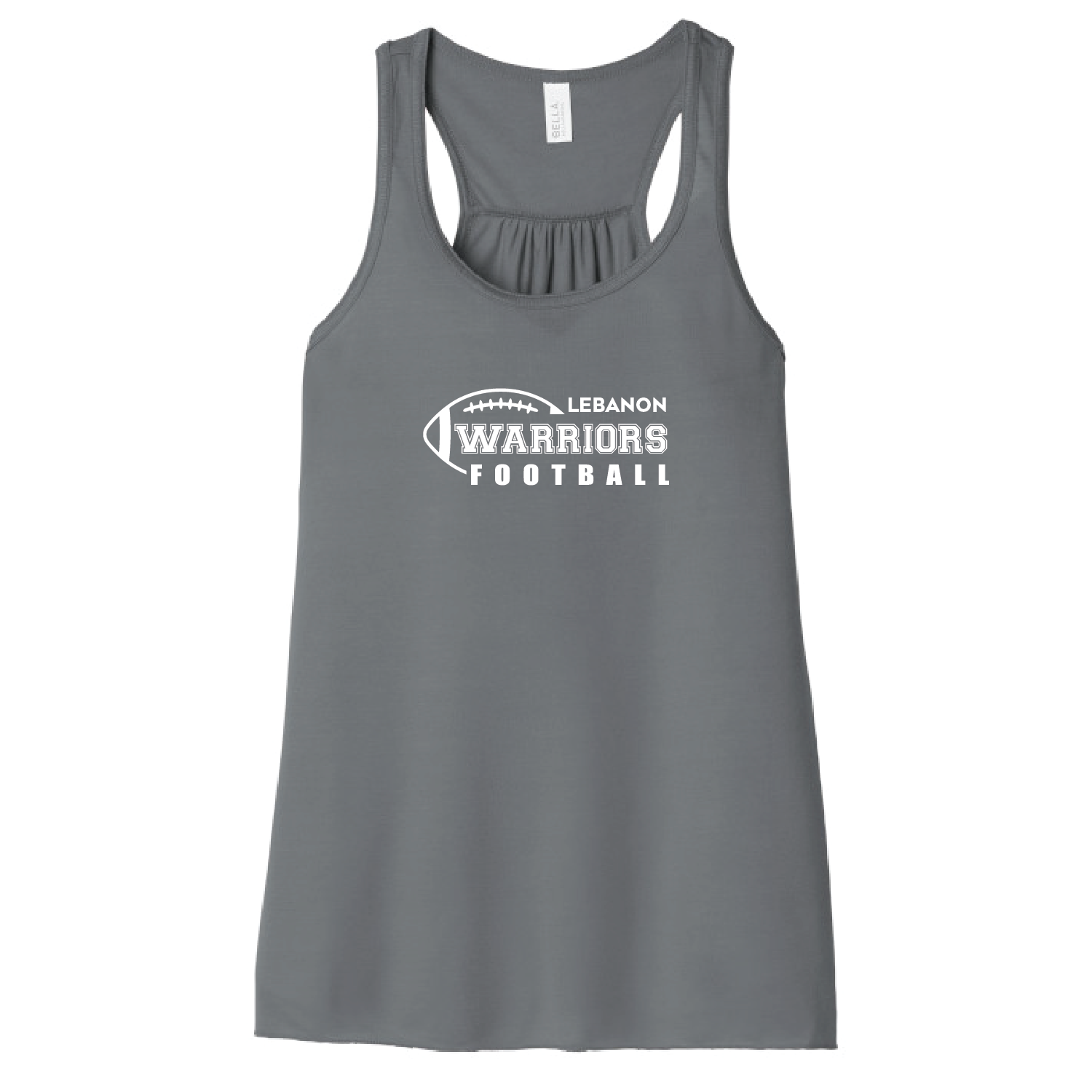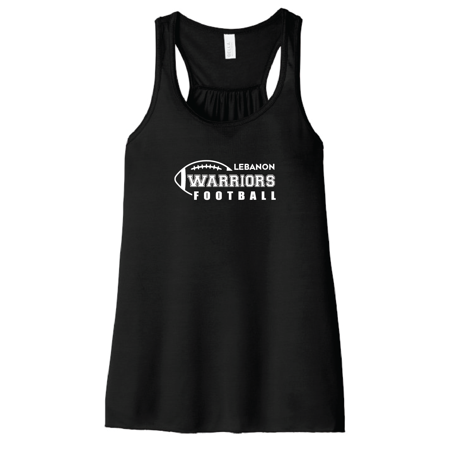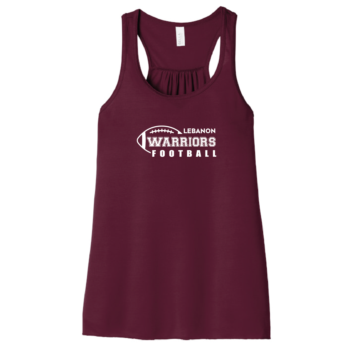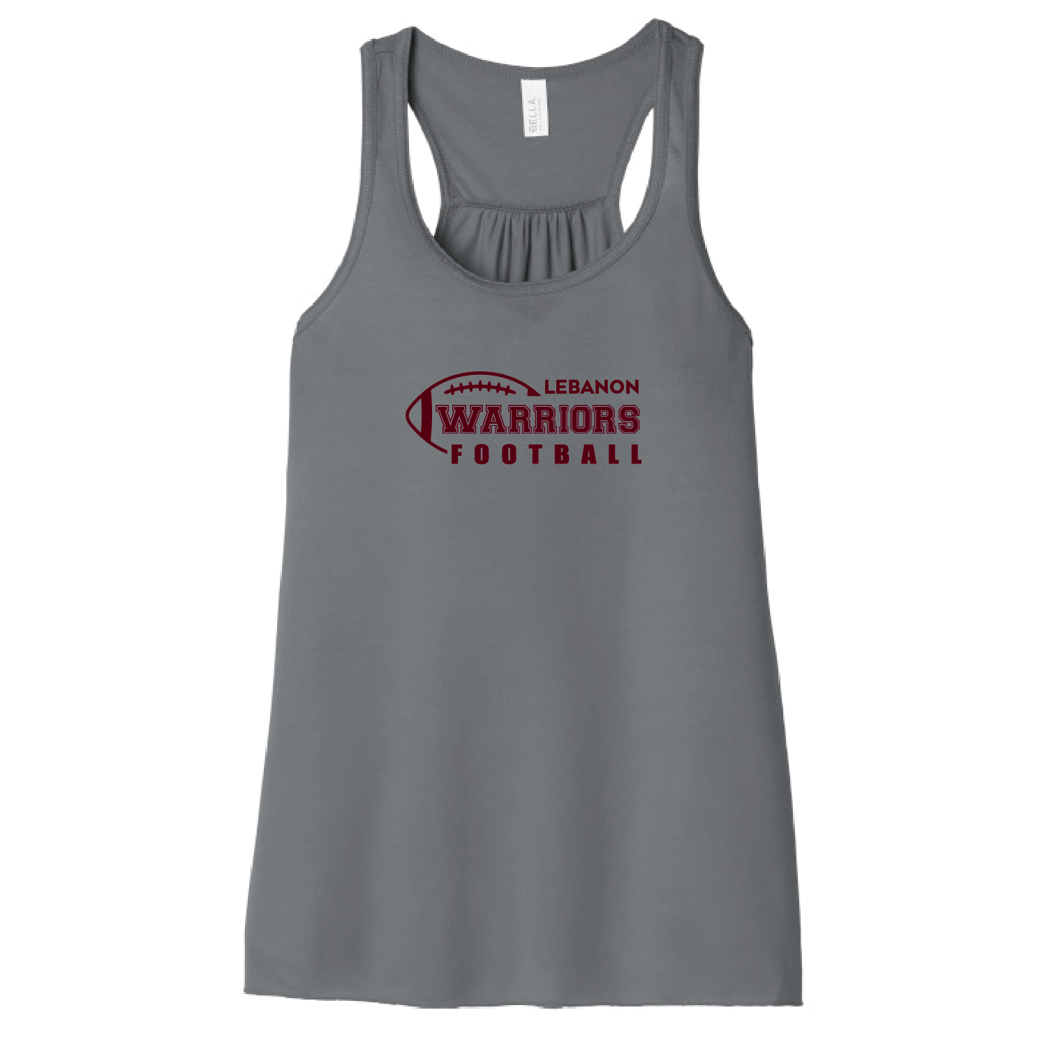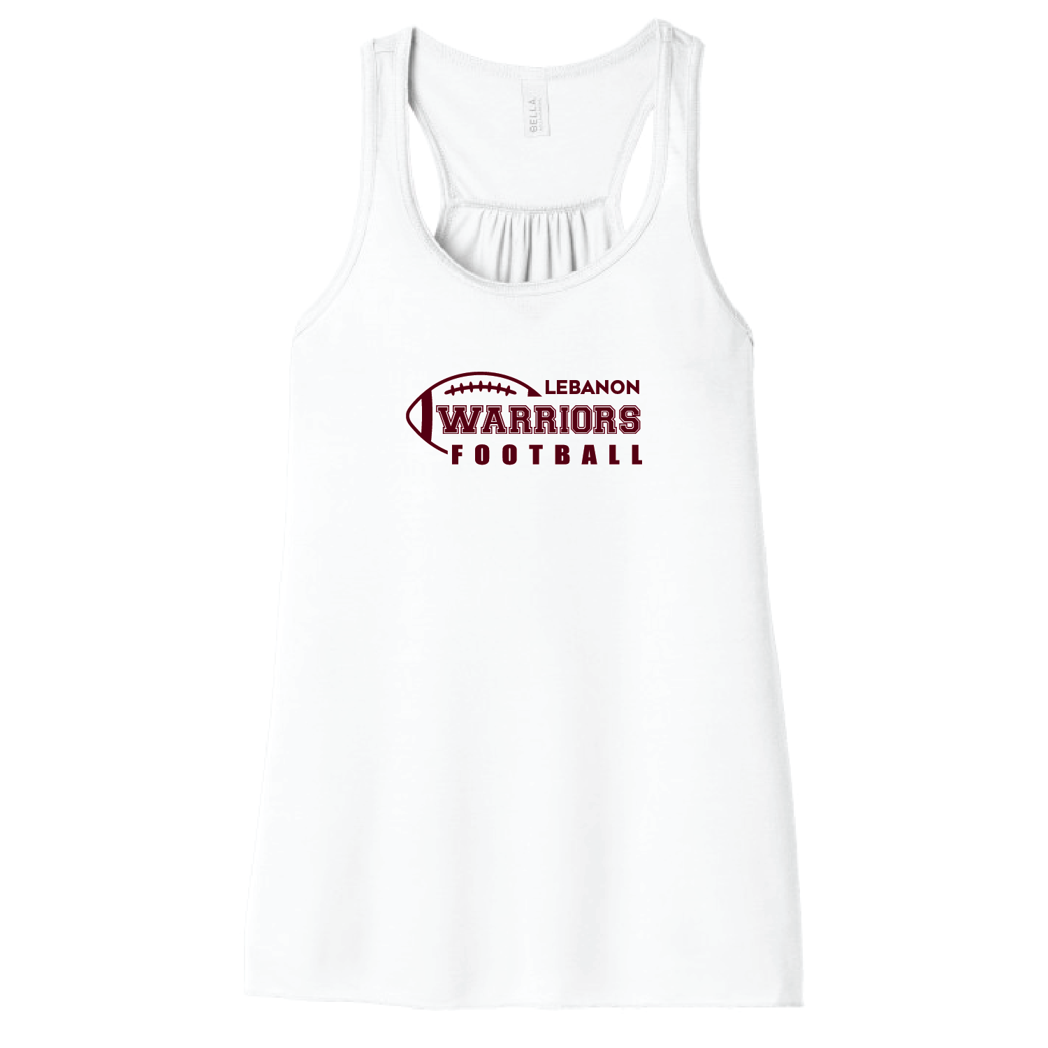 “LEBANON WARRIORS FOOTBALL” printed on center chest. Your choice of Tank Top Color – Maroon, Black, White or Storm (Grey).