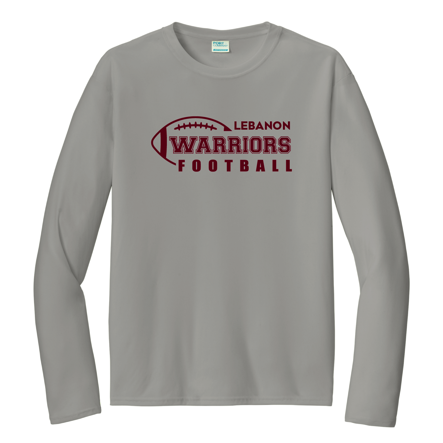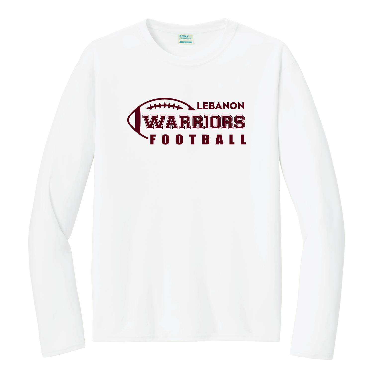 “LEBANON WARRIORS FOOTBALL” printed on center chest. Your choice of shirt color – Maroon, Black, White or Grey Concrete
