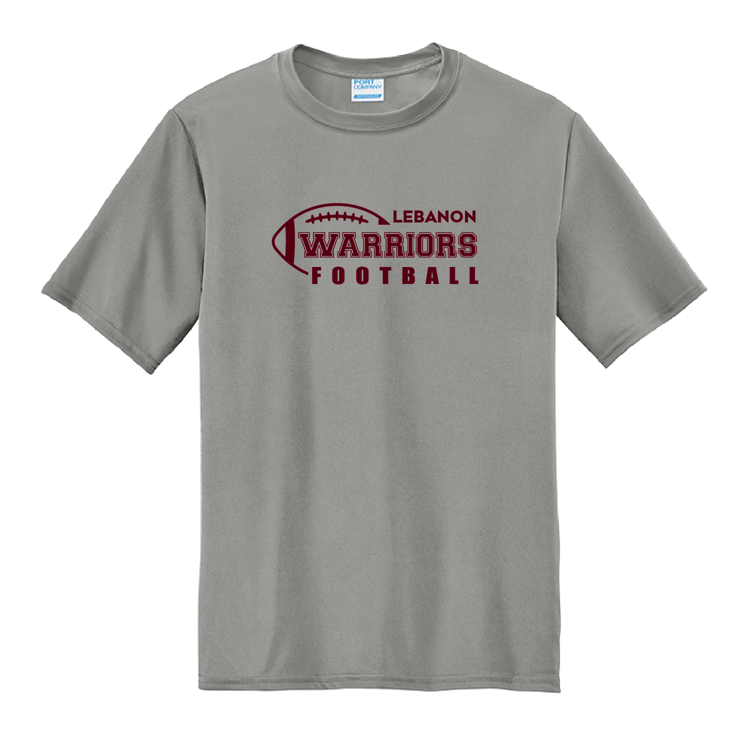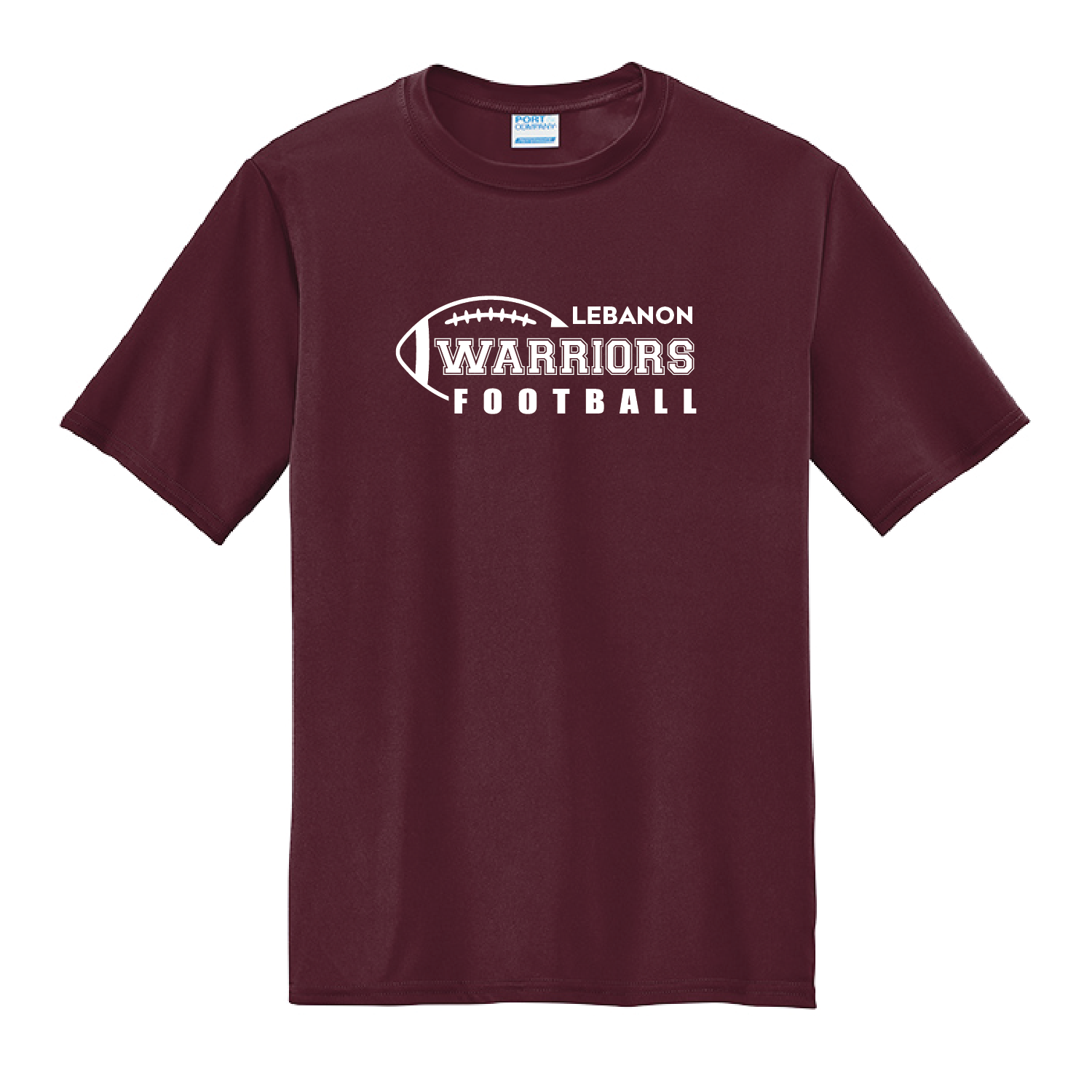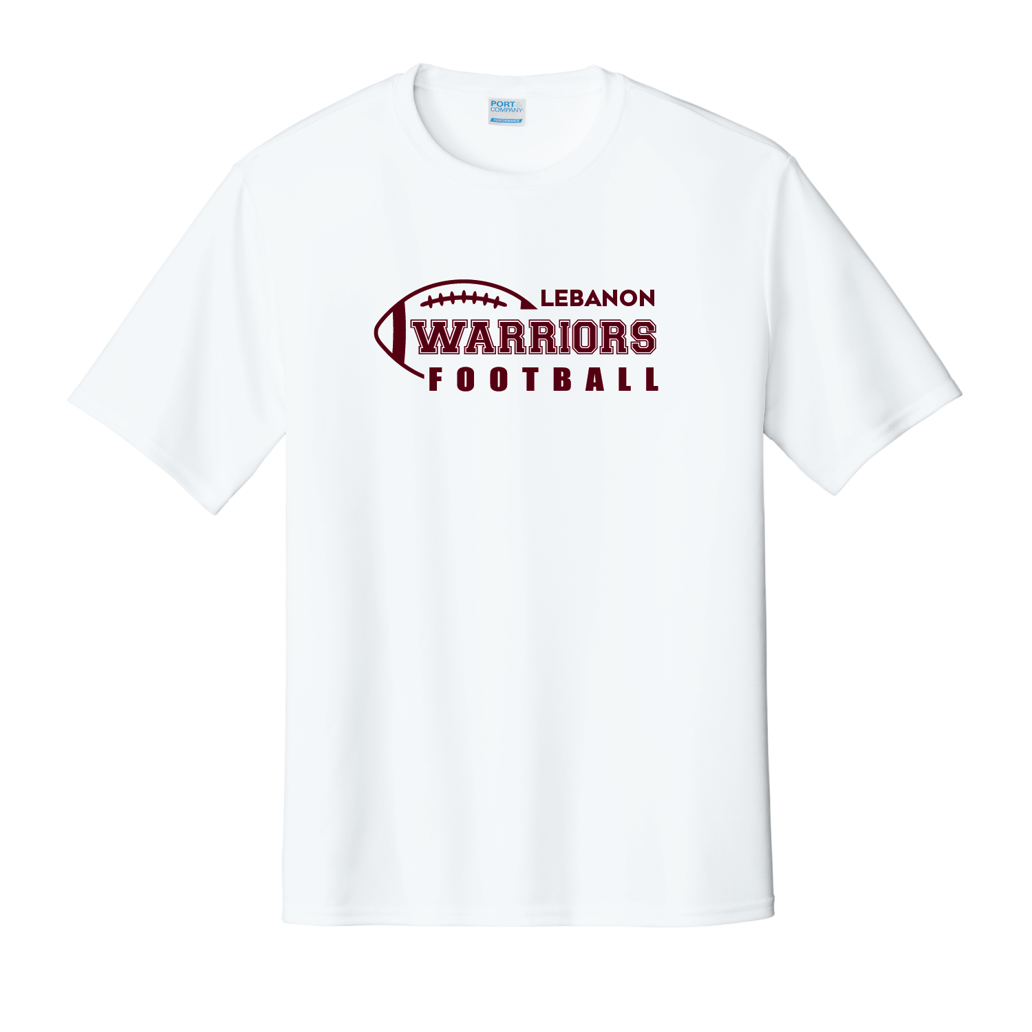 “LEBANON WARRIORS FOOTBALL” printed on center chest. Your choice of shirt color – Maroon, Black, White or Grey Concrete.